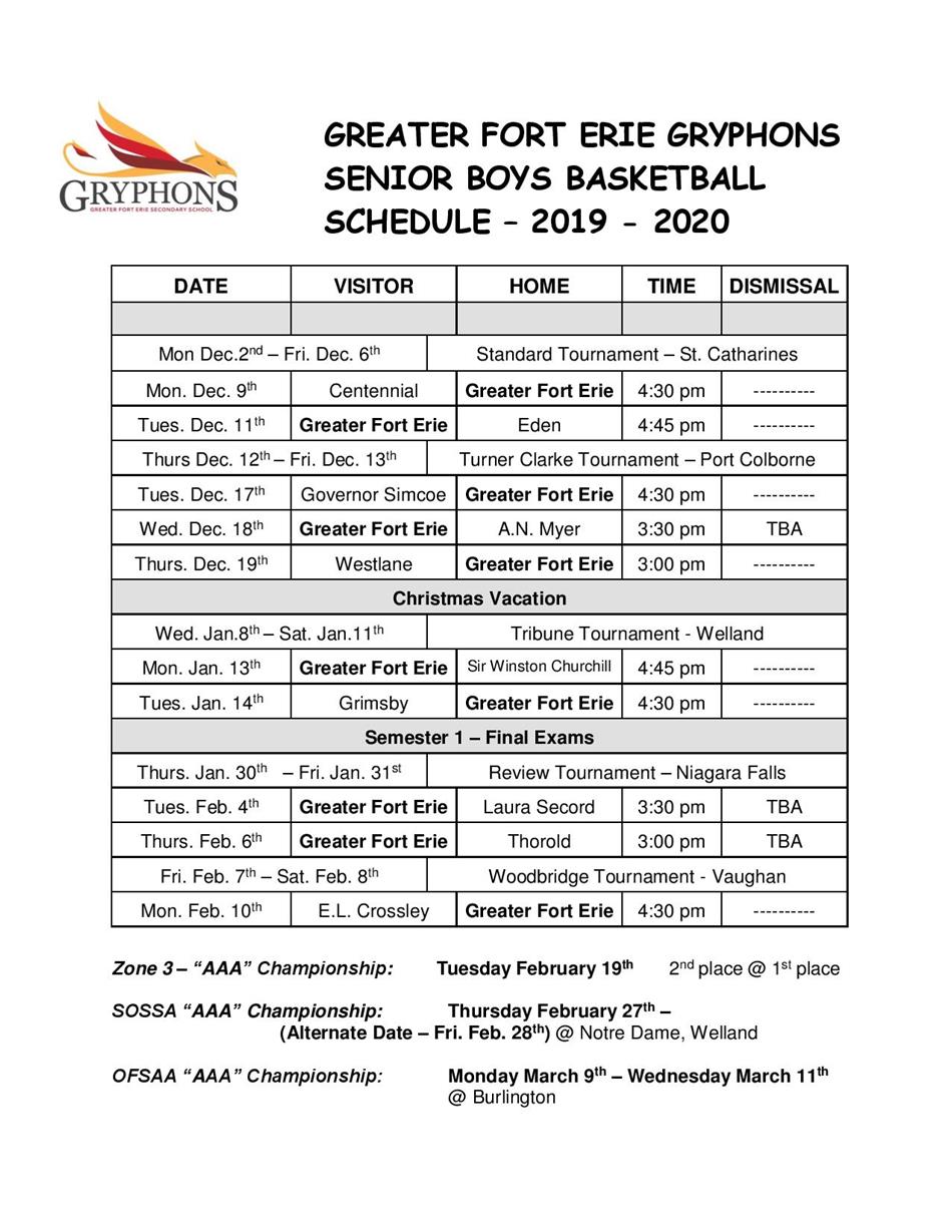 Senior Boys Basketball is offered to the grade 11 and 12 boys. Tryouts begin at the beginning of November and the season concludes around the beginning of March. The boys will play an 6 - 10 game league schedule with playoffs to follow. Practices are usually held daily and could be either before or after school.